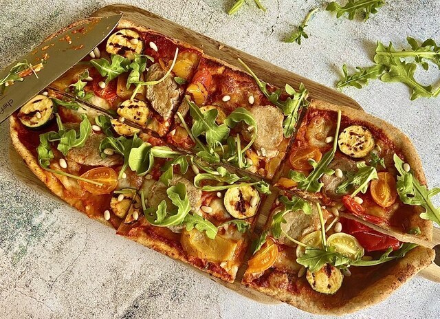 Iberico pork pizza with flavours of patatas bravas by Michael Catling 25 March 2026 Skip to Recipe Print Recipe 9 Inspired by Spain’s most iconic tapas, this homemade pizza layers Iberico pork with a spicy, bravas-style sauce for a deeply savoury, irresistible bite. Homemade pizzas are just the best, aren’t they? Set aside a leisurely day at the weekend and you can make a big batch of the dough, ready to be frozen or baked later that day. The rest of your time can then be spent perfecting my bravas-inspired tomato and garlic sauce, which is so good you’ll want to bottle it. The flavours pair beautifully with thin slices of Iberico pork, which is comparable to wagyu beef in flavour and tenderness. Make this pizza for a special occasion and you’re guaranteed to impress your dinner guests. How To Make Iberico Pork Pizza With Flavours of Patatas Bravas Chef Catling’s recipe notes Recipe: Iberico pork pizza with flavours of patatas bravas Frequently asked questions Tips & Notes To Know Look for bread flour or 00 flour: They give better chew and structure. Standard plain flour works, but won’t be as stretchy. Pull, don’t roll: Gently stretch the dough with your hands, rather than using a rolling pin, to preserve air bubbles for a light, chewy crust. Don’t worry if it’s not a perfect circle — rustic is good. Less is more: Avoid adding too many toppings to the base, otherwise it will get weighed down and go soggy. No pizza stone? Use an upside-down baking sheet and whack the oven up to at least 220C to to mimic the high heat of traditional pizza ovens. Iberico pork pizza with flavours of patatas bravas Serves: 4 Prep time: 30 mins, plus 2 hours resting time Cook time: 35 mins 35 mins Pin Print Ingredients For the pizza base7g dried yeast325ml lukewarm water250g wholemeal bread flour250g plain bread flour1 tsp smoked salt1 tsp granulated sugar1 tbsp extra-virgin olive oil, for shaping, plus extra for drizzlingSemolina, for sprinkling For the bravas sauce2 tbsp olive oil1 white onion, finely chopped5 garlic cloves, crushed1 x 400g tin chopped tomatoes2 tbsp tomato purée1 tbsp smoked paprika1/2 tsp cayenne pepper1 tsp sugarSmall handful of fresh flat-leaf parsley, finely chopped For the toppings200g lighter mozzarella cheese, torn into small chunks1/2 x 280g jar chargrilled mixed peppers, sliced16 mixed cherry tomatoes, halved1 courgette, thinly sliced into rings1/2 tbsp olive oil400g Iberico pork medallions To serve1 tbsp pine nutsSmall handful of rocket leaves, to garnish Instructions Step 1To activate the yeast, pour into a glass with the lukewarm water and leave to stand for 5 minutes (you’ll know it’s ready when little bits of the yeast rise to the top and air bubbles have appeared on the surface). Step 2Tip the flours, salt and sugar into a stand mixer with a dough hook attached and mix well. Make a well in the centre and pour in the yeast liquid. Turn on the motor and knead for 6-8 minutes or until the dough is shiny and springy to the touch. Step 3Tip the dough out onto a lightly-floured work surface and cut into four, equal-sized balls. Knead each piece for 2 minutes, then roll into balls and place on a lightly-floured baking tray. Cover with a damp tea towel and leave to rise in a warm place for 2-3 hours or until doubled in size. Step 4To make the bravas sauce, heat the olive oil in a saucepan and sauté the onion gently for 5 minutes until starting to soften, but not coloured. Stir in the garlic and cook for 1 minute more. Step 5Add the chopped tomatoes, tomato purée, smoked paprika, cayenne pepper and sugar and bring to the boil. Turn down to a simmer and cook for 15-20 minutes or until thickened. Season to taste and stir through the chopped parsley. Remove from the heat and leave to cool. Step 6When ready to make the pizza bases, place your pizza peel or baking tray(s) in the oven at 220C to heat up. Knock the dough back, then lightly oil your hands and stretch each ball of dough into a circle (the bigger the size, the thinner your base will be). Alternatively, use a rolling pin if you find it easier. Step 7Evenly spread the bravas sauce over each base, leaving a small border at the sides. Top each pizza with 50g mozzarella equally, followed by 4 cherry tomatoes and a small handful of peppers and courgette rings. Step 8Heat the remaining olive oil in a frying pan over a medium-high heat and lightly season the Iberico pork. Sear the medallions, in batches, for 1 minute on each side or until golden brown. Remove from the heat and divide between each pizza base. Step 9Remove the pizza peel or baking sheet(s) from the oven and lightly sprinkle each one with semolina. Gently slide each pizza on top (you may need to do this in batches) and cook for 8-10 minutes until the bottom is crisp, the pork is cooked through, and the cheese is bubbling. Step 10Drizzle each pizza with extra-virgin olive oil and top with a sprinkling of pine nuts and a few rocket leaves before serving. Did You Make This Recipe? Tag me on Instagram at @Chef_Catling. Frequently Asked Questions What Is Iberico Pork? Iberico pork comes from the Iberian black pig, a breed native to Portugal and areas of southern and central Spain. These pigs are often free-range and feast on a diet of acorns, which results in deeply marbled and nutty meat. It’s often likened to Wagyu beef because of its tenderness and rich flavour profile What’s The Difference Between Plum And Canned Chopped Tomatoes? Canned tomatoes are picked at their ripest and retain more texture than passata because they are less processed. Canned cherry tomatoes are highly prized because of their wonderfully sweet flavour, while whole peeled ‘plum’ tomatoes are generally favoured over chopped tomatoes because they are the most versatile and fuller in flavour. It is true that you get what you pay for, so try and seek out the best quality tomatoes to produce a richer and more flavourful sauce. How Do You Stop Your Pizza Base From Stickin